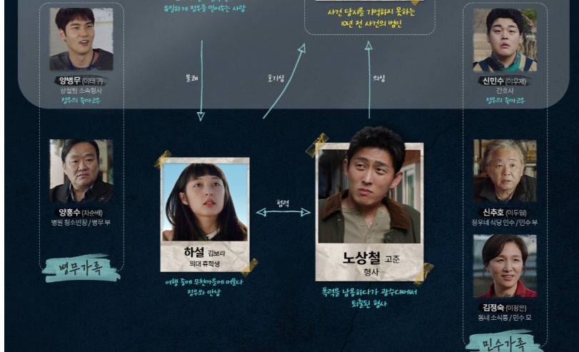 ● 신민수 역(이우제): 과거 19세, 현재 30세. 정우의 친구로 간호사. 소심하고 낙천적이고 말실수를 자주 합니다. 정우의 출소로 10년 전 기억에 자꾸만 겁이 납니다.