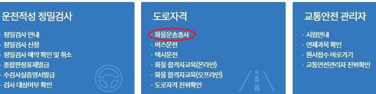 2. '도로자격' > '화물운송종사' 항목을 선택합니다.